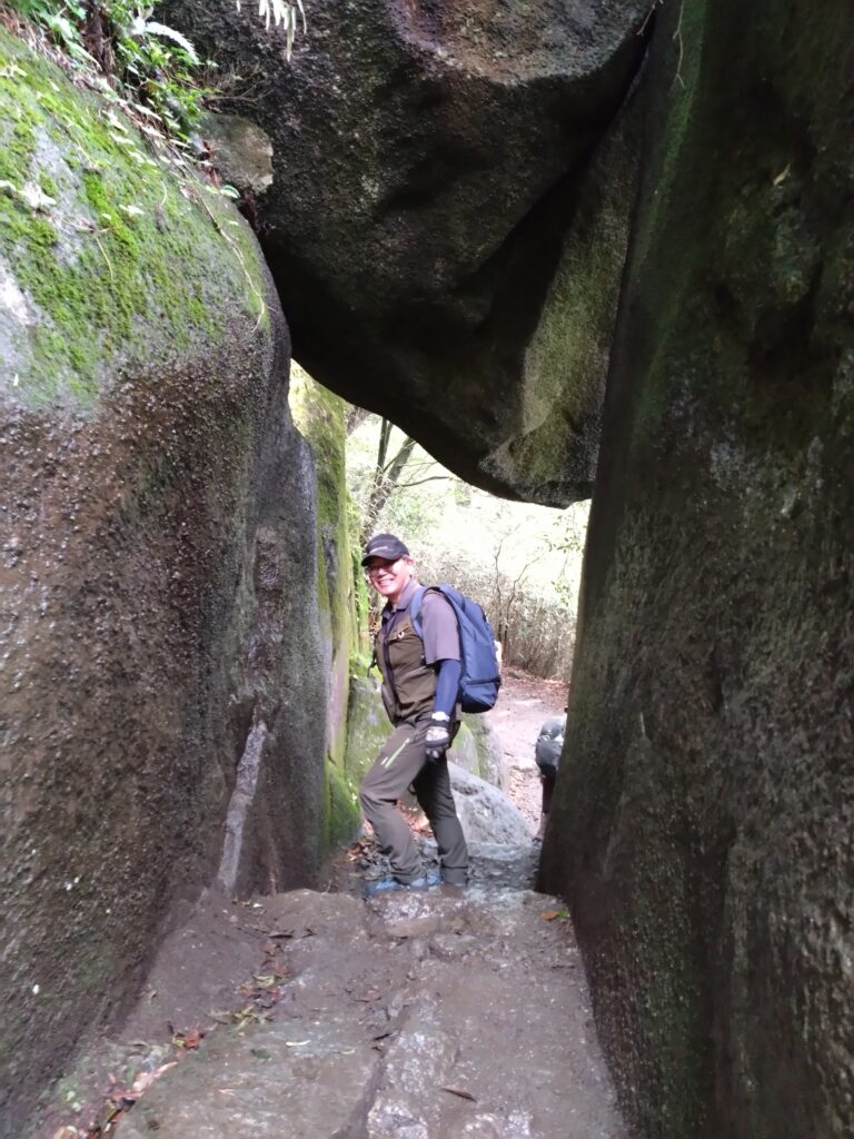 巨岩地帯を抜けるとしばらく平坦な道が続き、標高820mをこえると急な岩場と