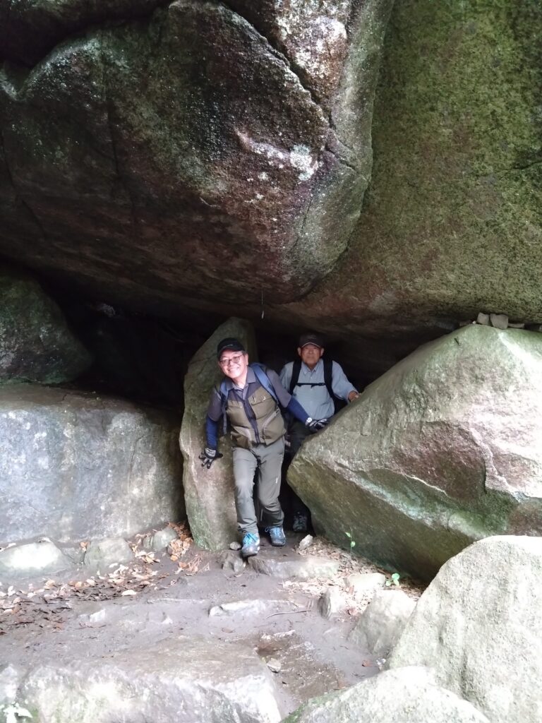ここからがコースの核心で巨岩の連続です。巨岩が岩と岩の間に不安定な形でのっかって