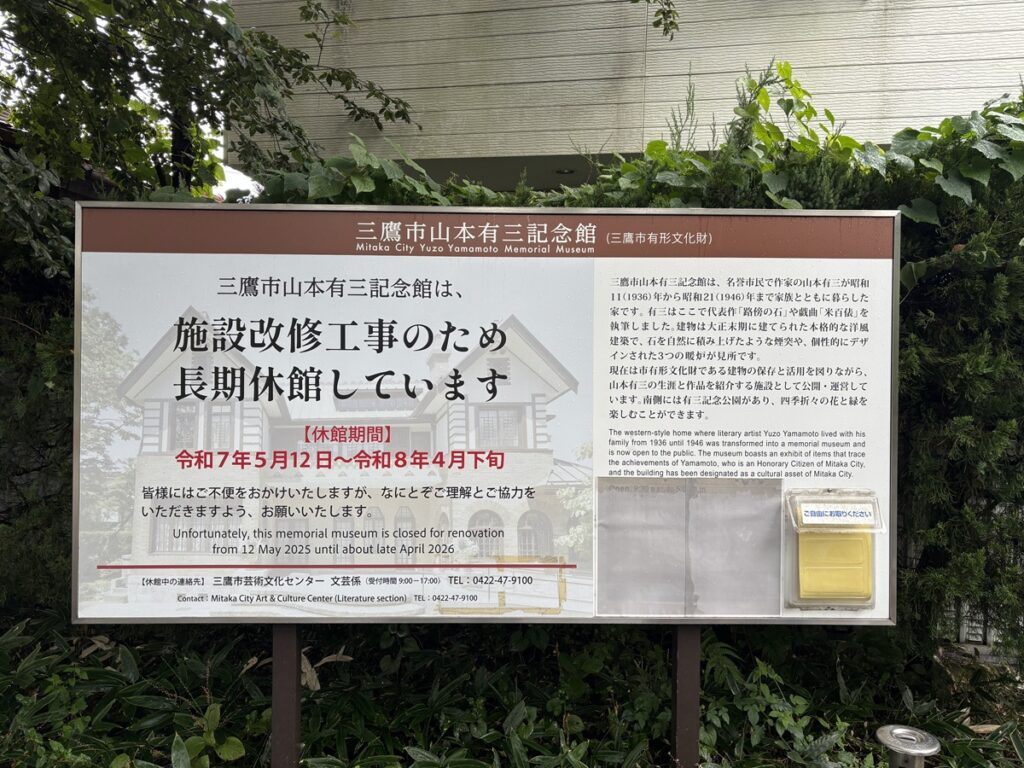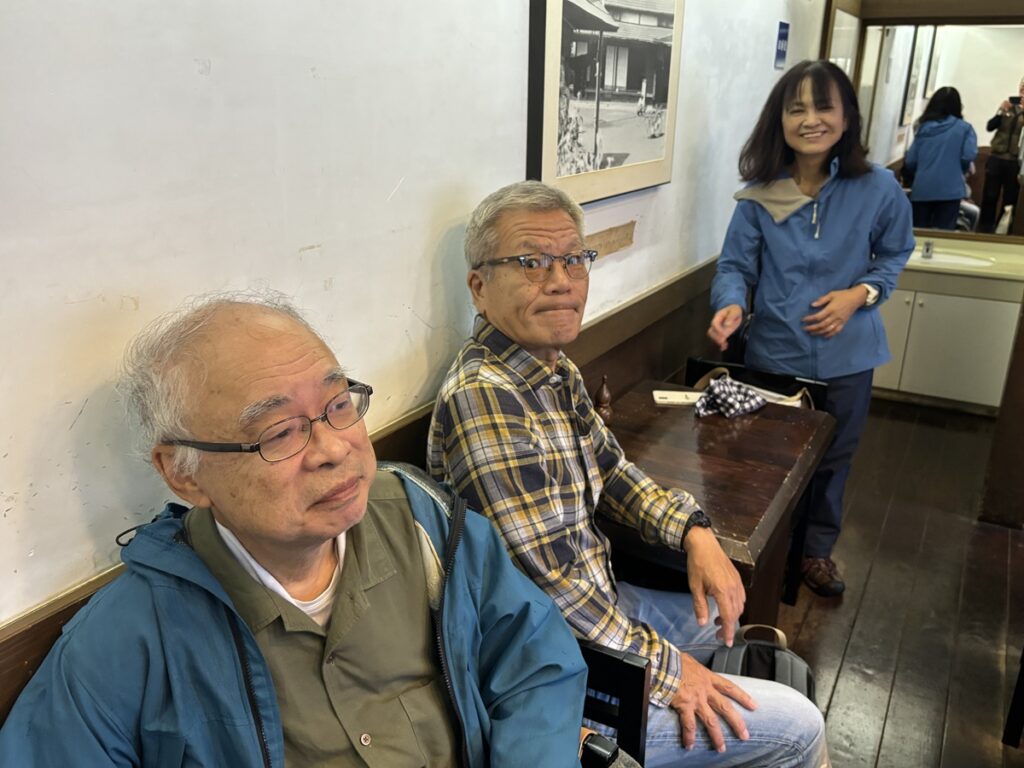 2025年10月1日(水)に久しぶりの町歩きとして「江戸東京たてもの園」から玉川上水に沿って吉祥寺まで歩く企画を立てました。参加者は、3期石黒さん、4期荒木さん、5期田中(宏)さん、初参加の6期山脇さん、阪女OG鈴木さん、13期小松崎さん、17期河野さん、18期阪本夫妻と佐野の10名です。あいにくの雨模様の天気ですが、武蔵小金井駅10時10分発のバスで江戸東京たてもの園に向かいます。