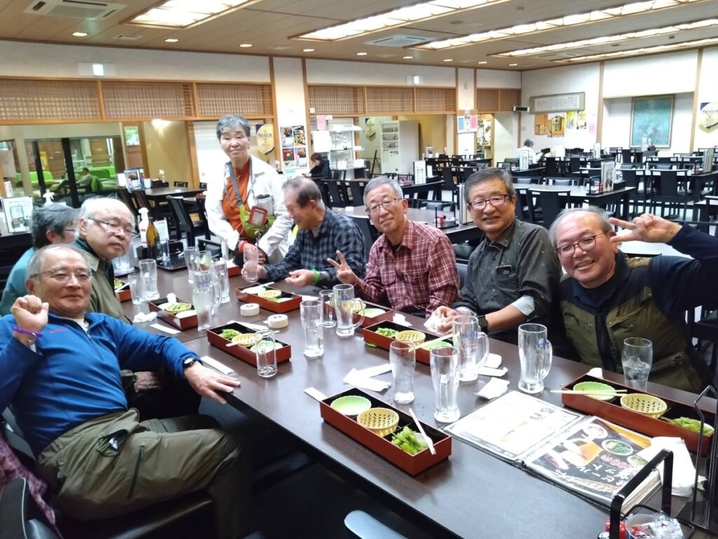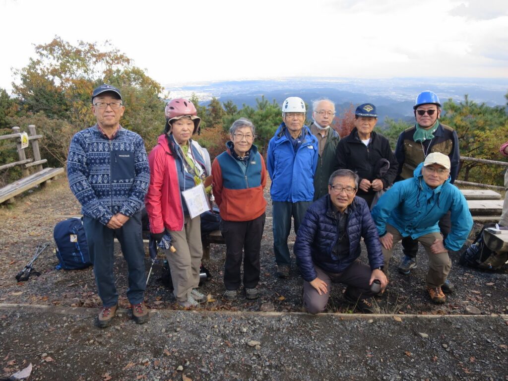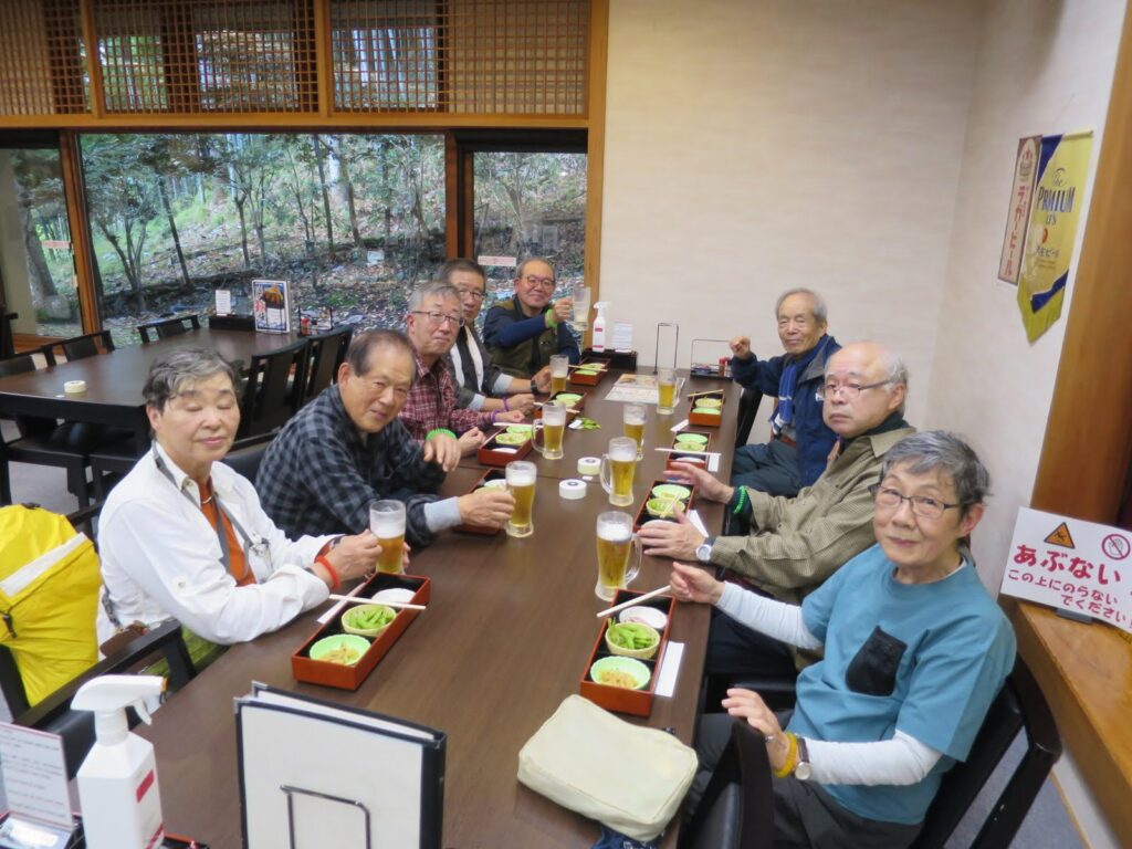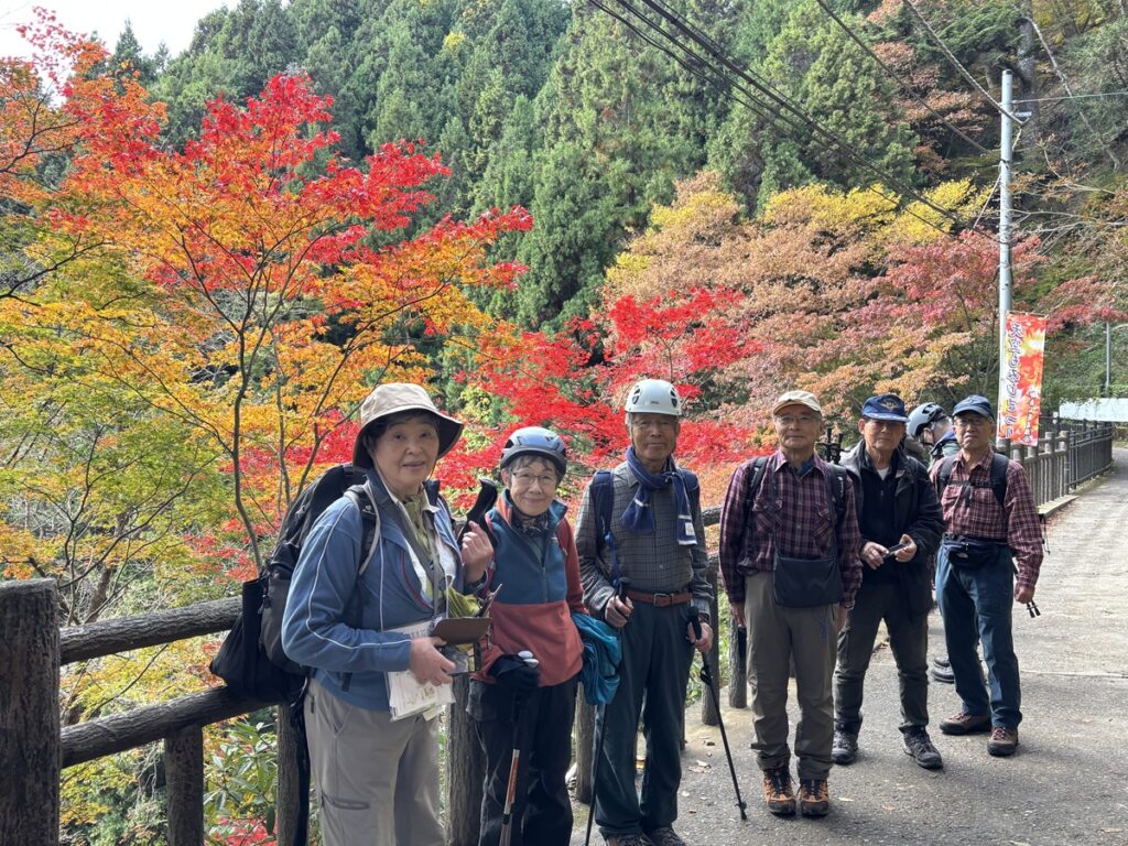 御岳山では見事な紅葉を堪能し、日の出山では遠く都心の中に浮かぶスカイツリーを見ることができました。つるつる温泉にはもう少し浸かっていたい気がしましたが、バス、電車が少ないので仕方ないですね。9人中5人がヘルメットを着用したのは長い平日会の中でも初めてでしたね。熊はともかく、80歳を越えると軽いハイキングでもヘルメットを着用するのが正解かも知れません。