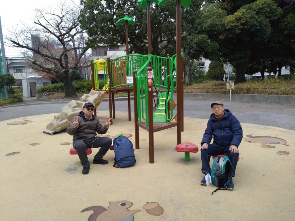 蛇窪神社近くになるとまた混んでいるかもしれないとのトラウマを感じ、正月の七福神の時にも休んだ公園でおやつタイムを取りました。事実それなりに混んでいましたのでここで休憩は正解でした。