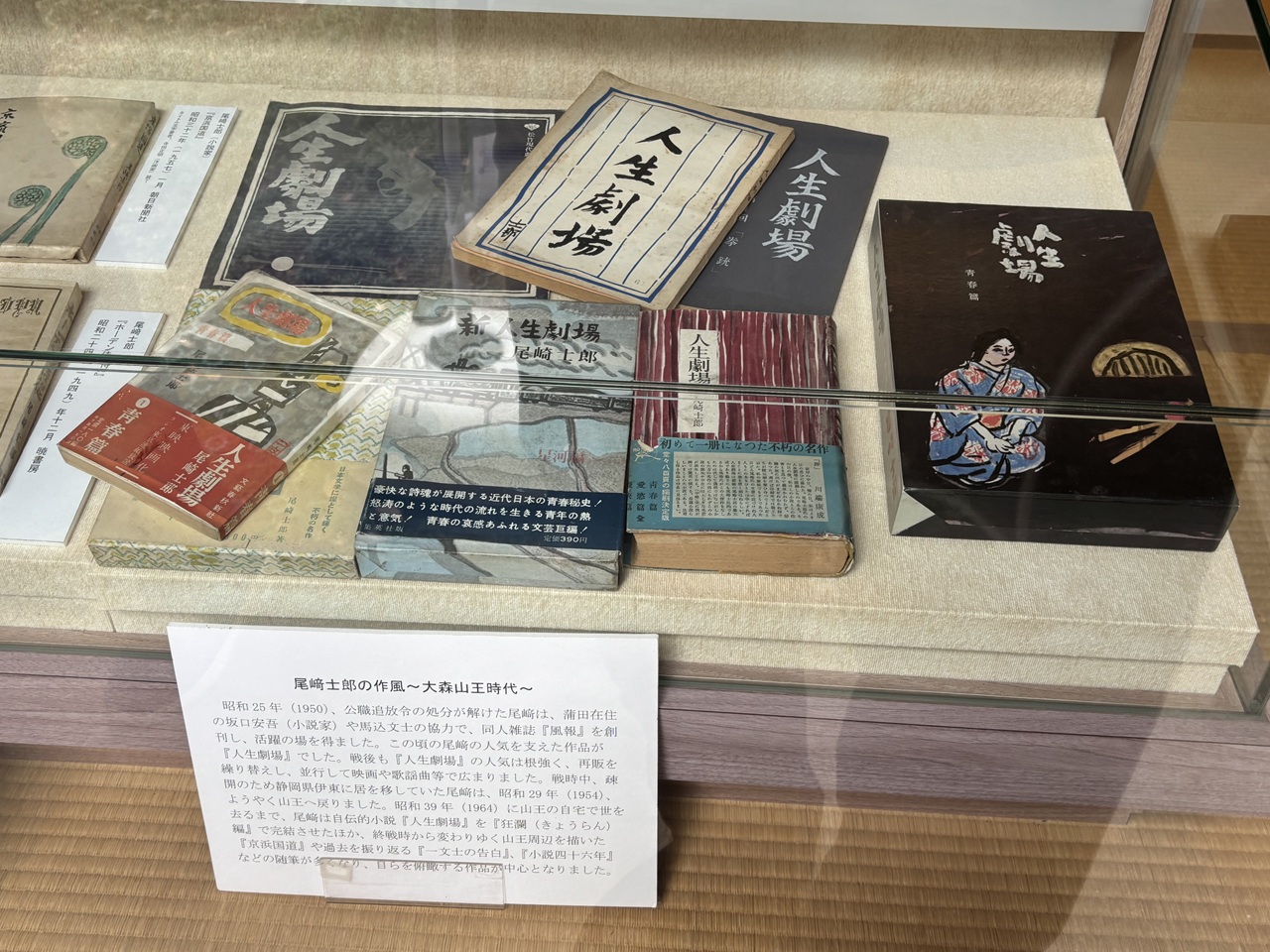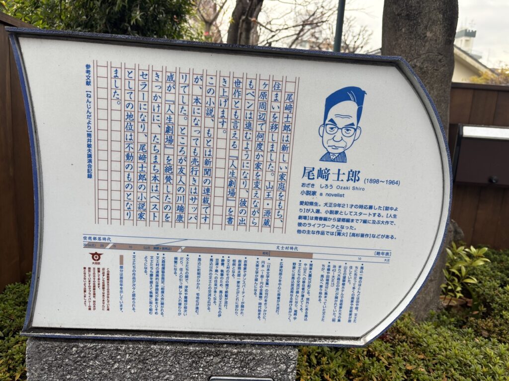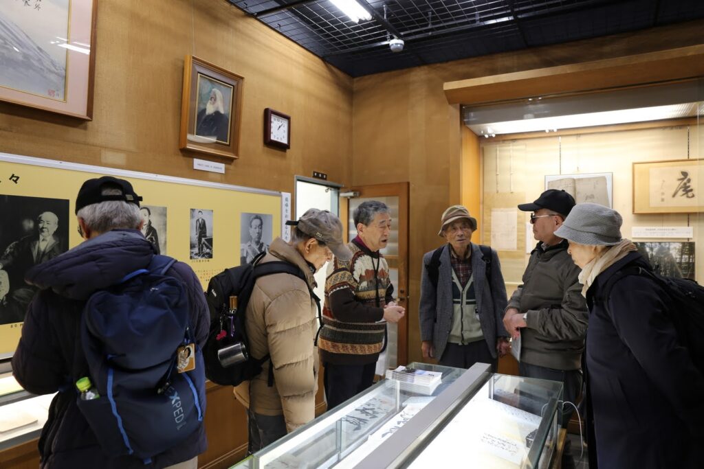 次に晩年を山王界隈で過ごした尾崎士郎の記念館を訪ねました。士郎の旧居(客間・書斎・書庫・庭)をぐるりと見ることが出来ます。『人生劇場』のヒットにより人気作家として不動の地位を気づいたとのことですが、名前は全員知ってはいるものの、残念ながら小説は誰も読んだことがないということがわかりました。(笑)